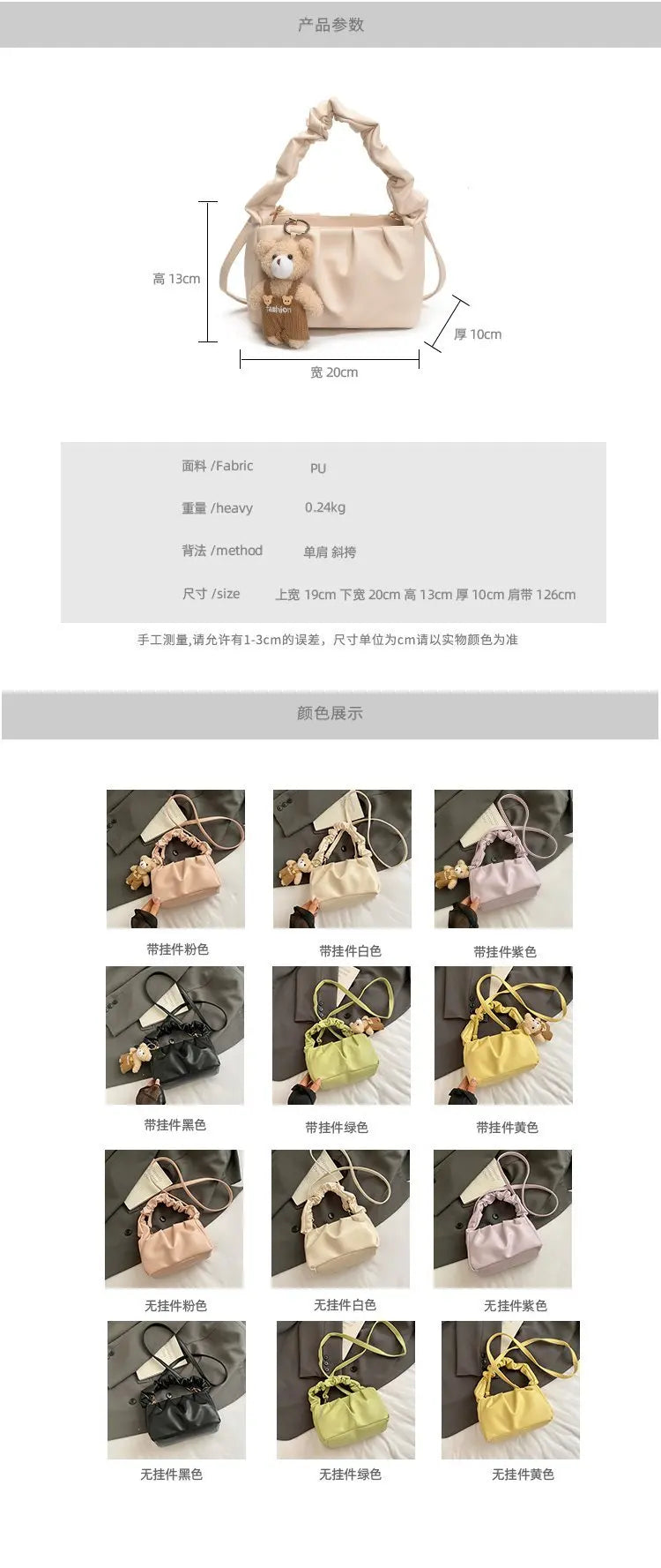 Product information: Lining texture: Polyester Applicable scenario: Daily configuration Color: black, brown, blue, Milky White, Brown, purplish red Outer bag...