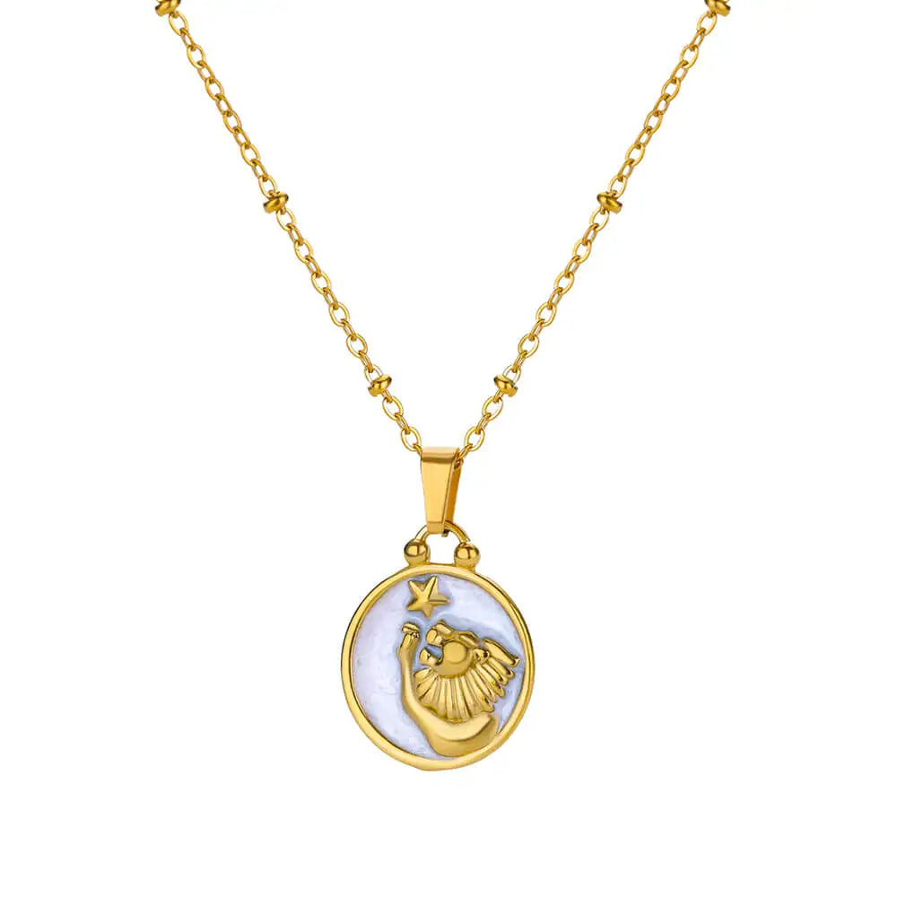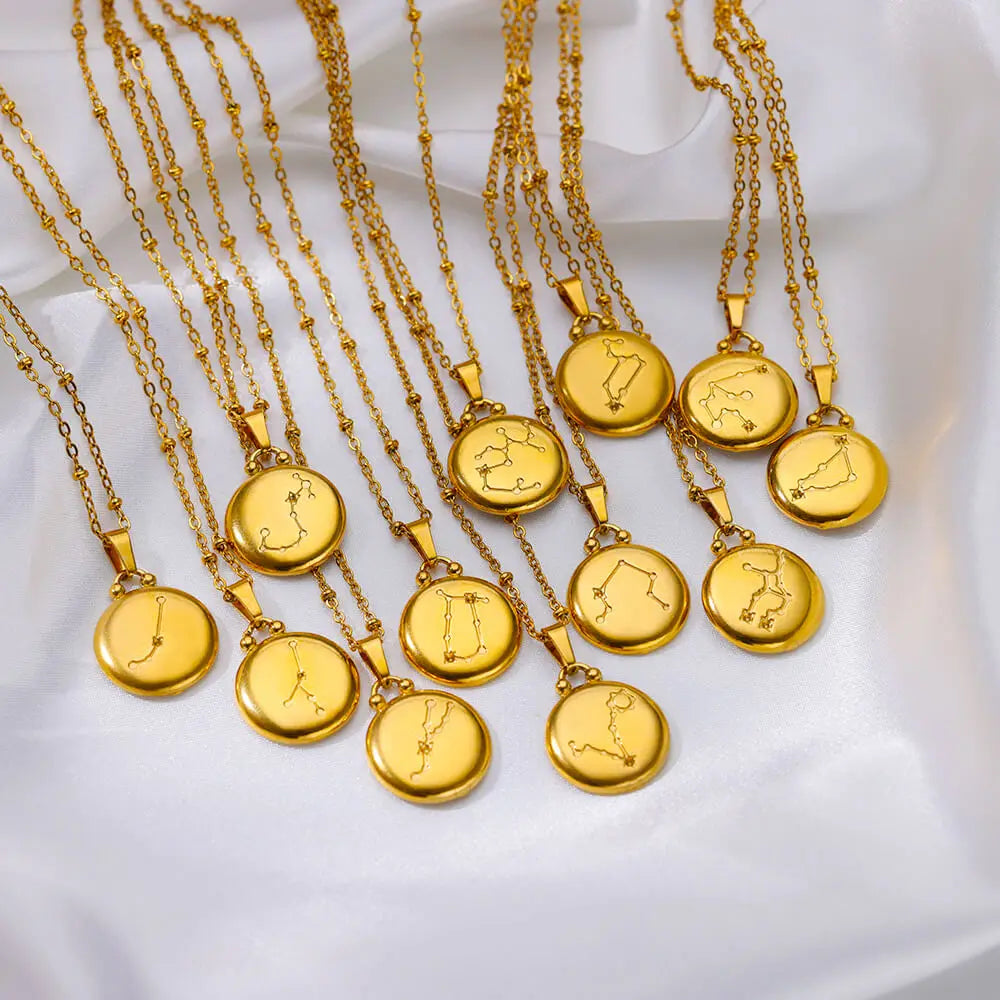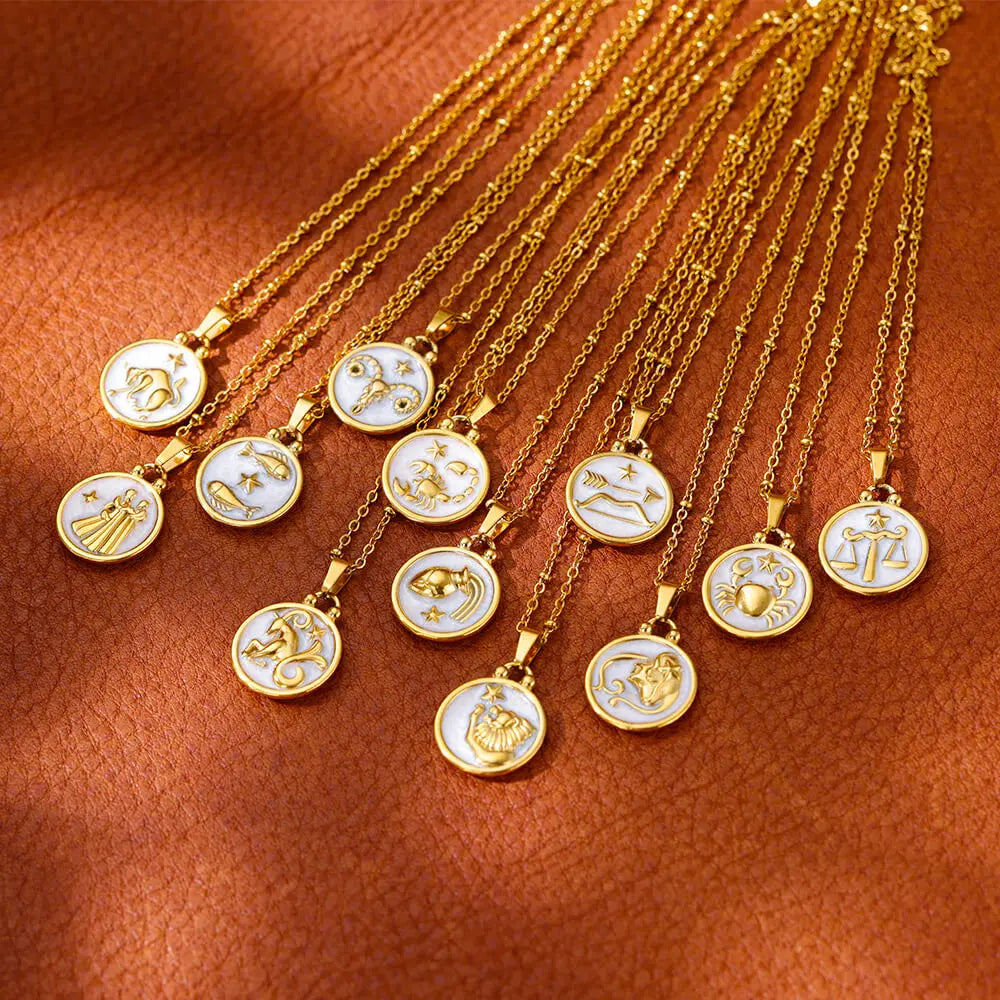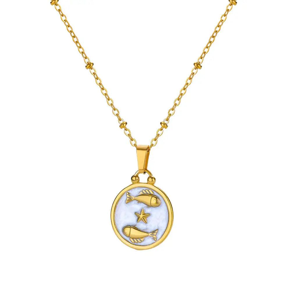 Pisces Round Pendant Stainless Steel Necklaces For Women Pisces Jewelry Trendy Gold Color Chain Necklace Gift for Friend mujer