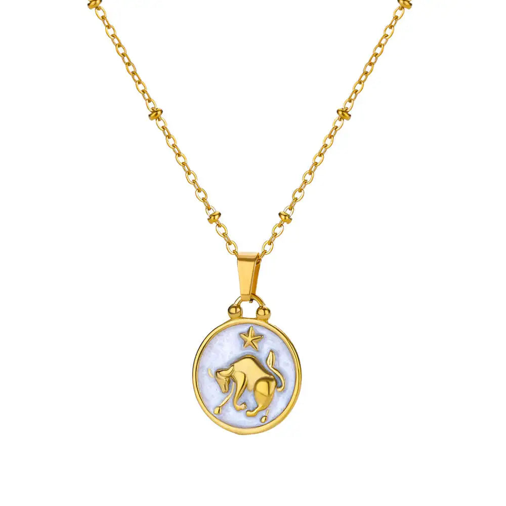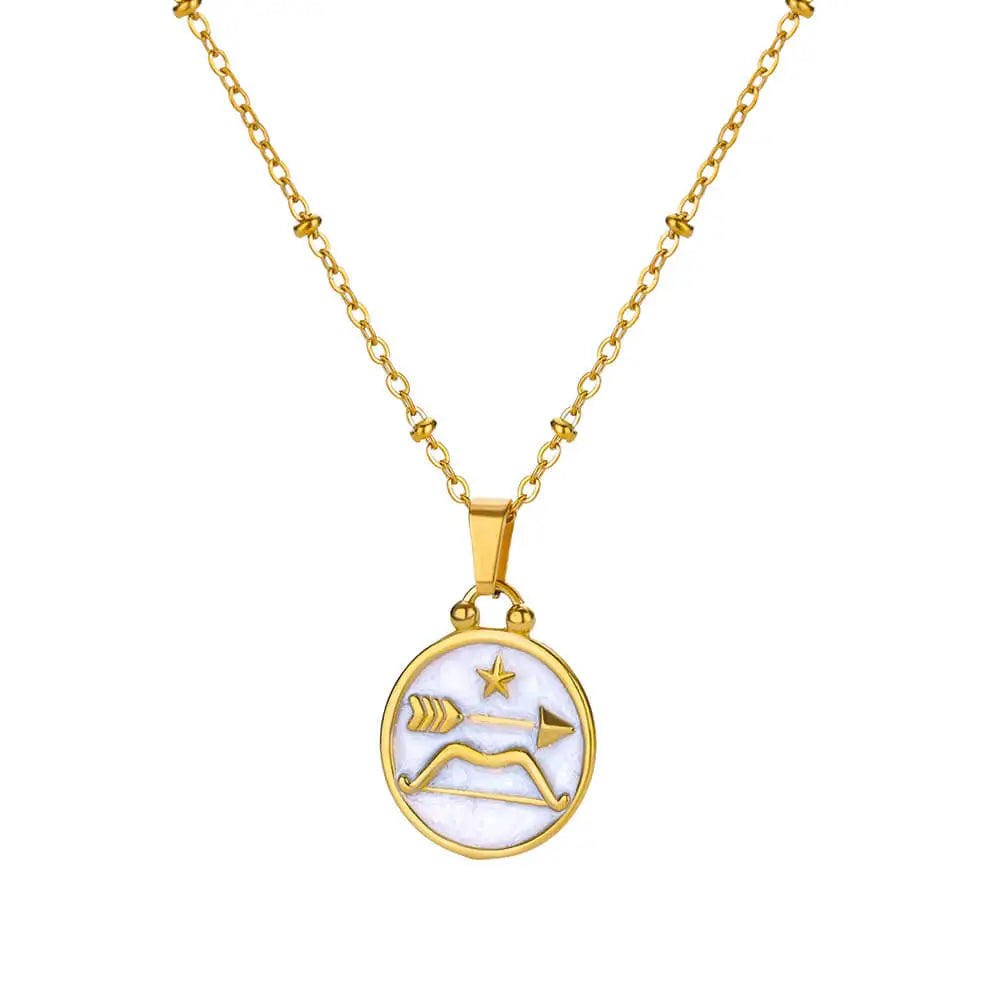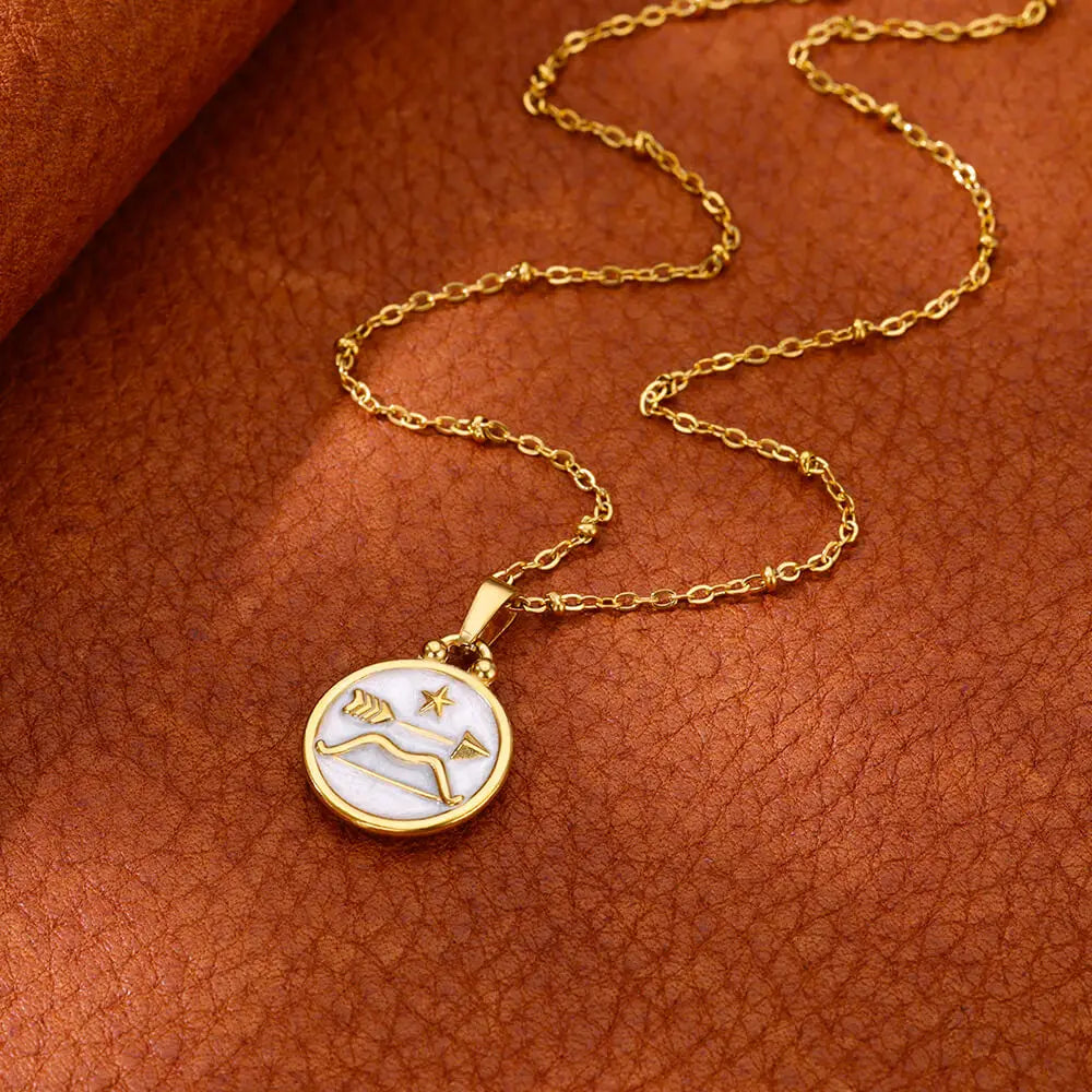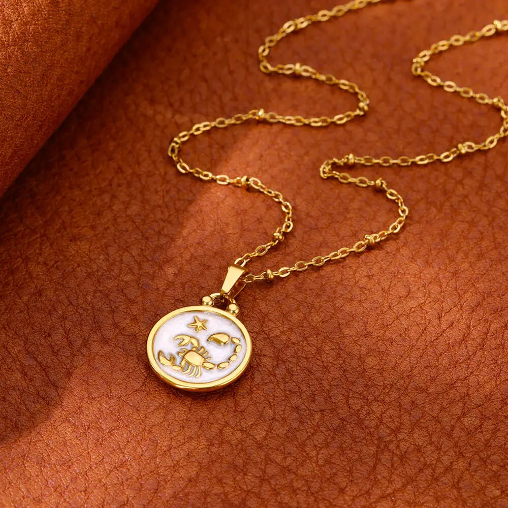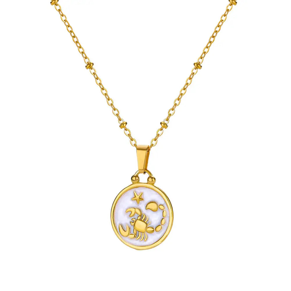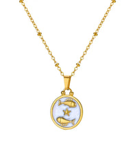 Trendy Gold Color Pisces Round Pendant Stainless Steel Necklaces