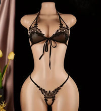 Hot Sexy Underwear Women Bodysuit Lingerie Lace Floral See Through Open Crotch Bodysuit Tie Open Bra Erotic Lingerie Set