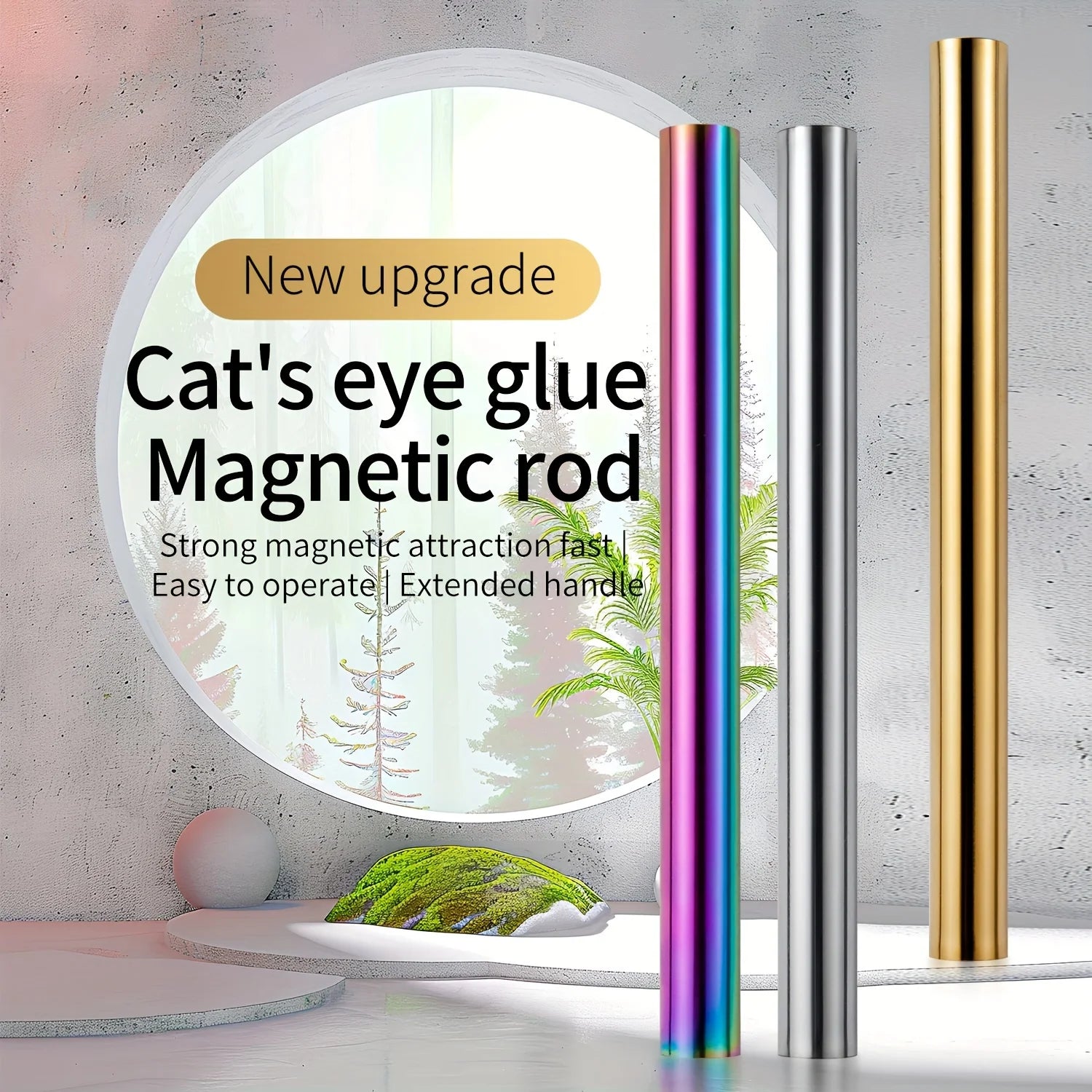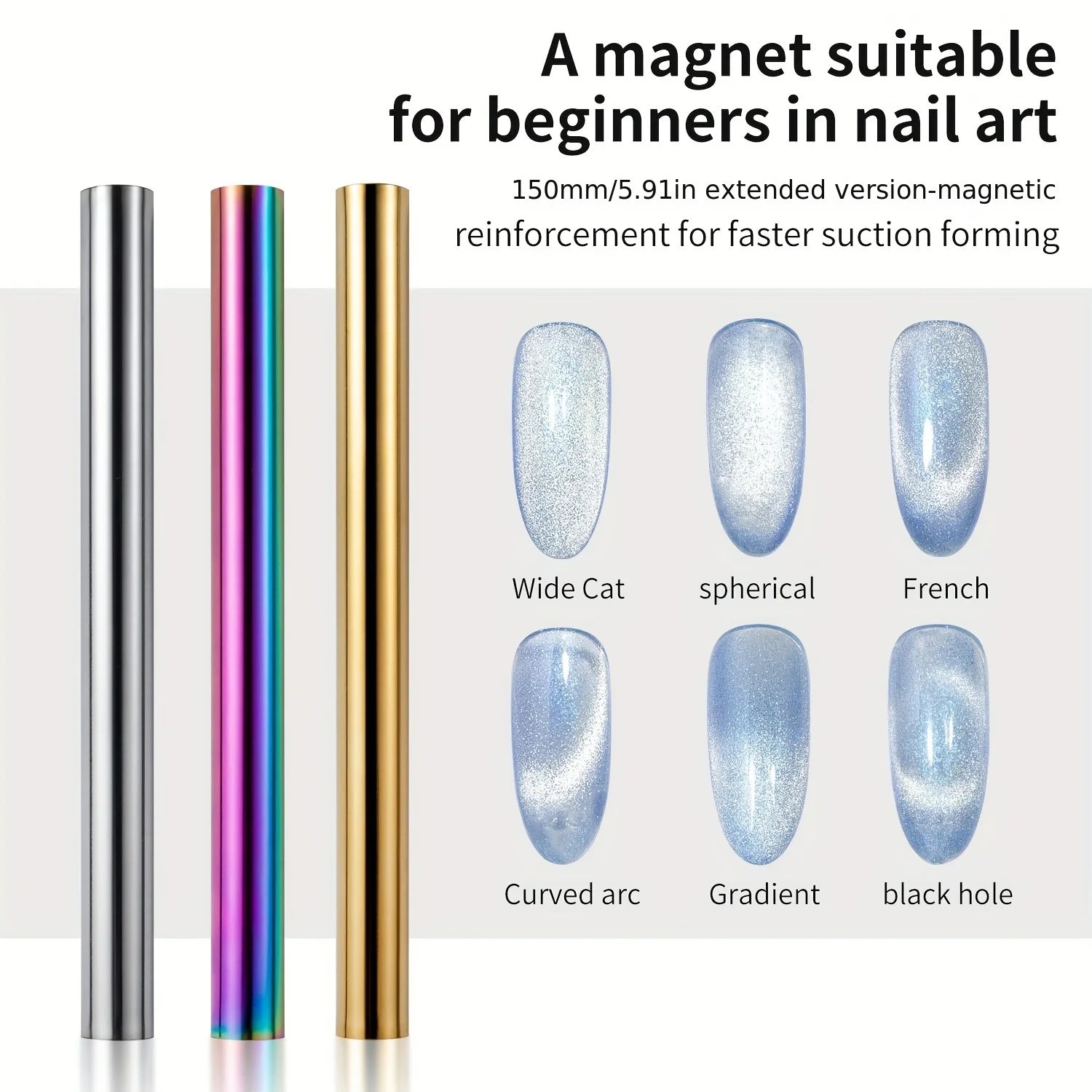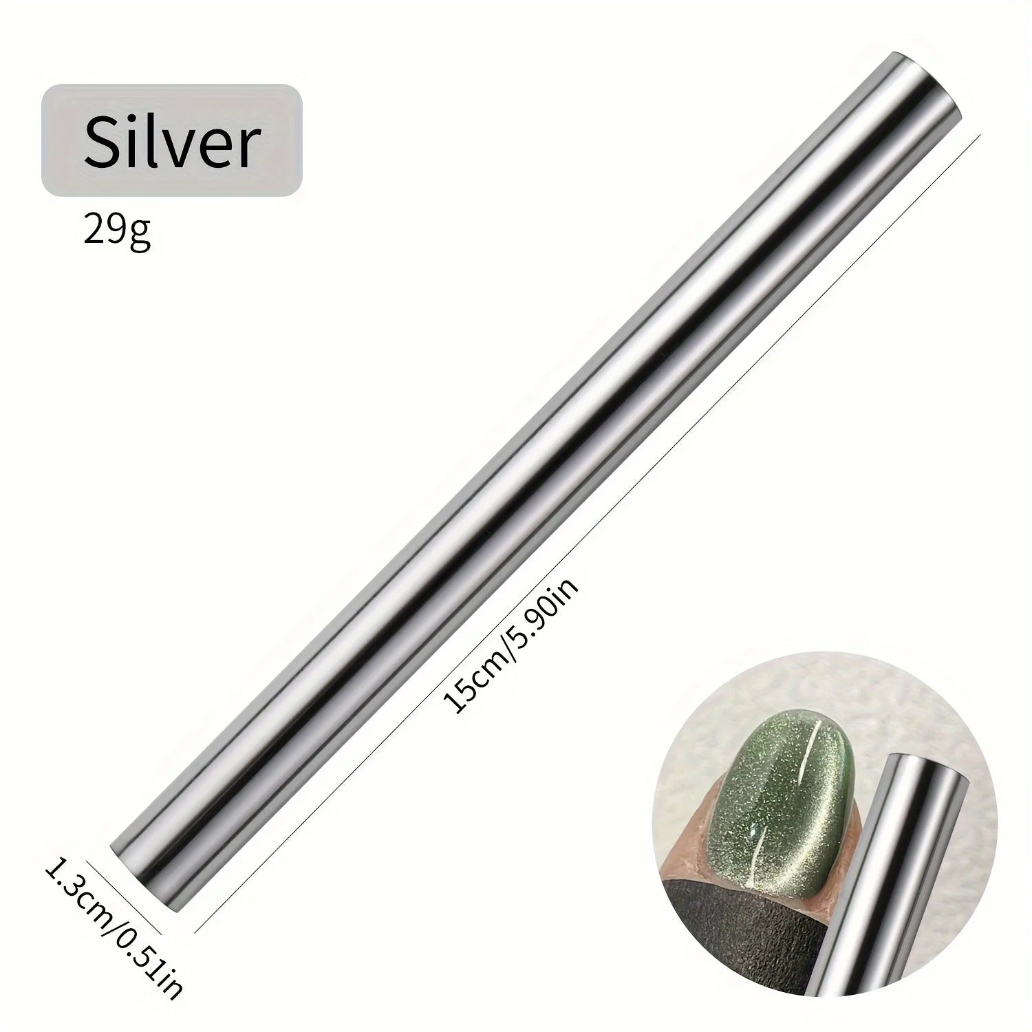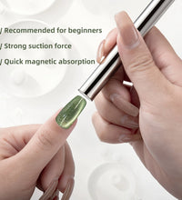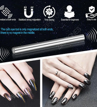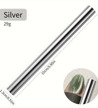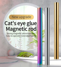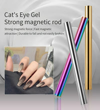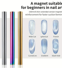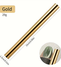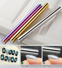 1.Double ended cylindrical strong nail magnet - 2PCS double-ended cylindrical nail magnet tools(iridescent and gold), length:5.9inch, diameter:0.51inch, weight 64g, strong magnetism, easy to hold, just 1 magnet can create different cat-eye magnet effects.(note: Only two ends are magnetic, the middle is not magnetic)