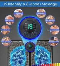 EMS Pulse Foot Massger Sole Massage Pad Current Stimulation 8 Modes 19 Level Electric