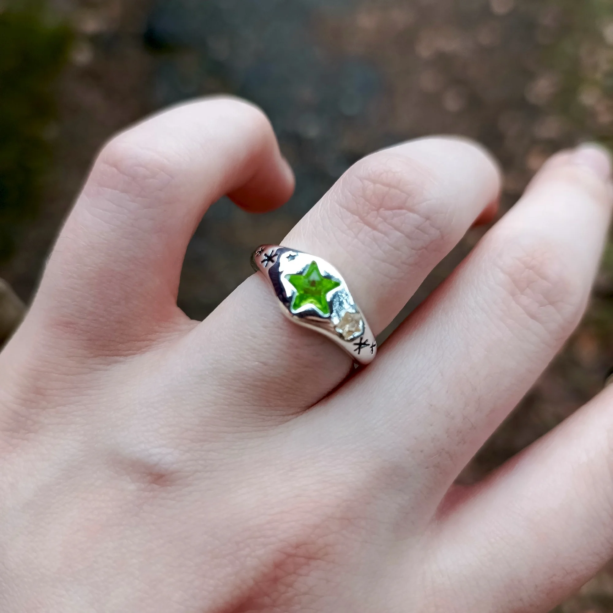 The stones in the ring are very strangely made; one of them sticks out from the ring and could cut someone or anything, while the other is convex and looks strange.