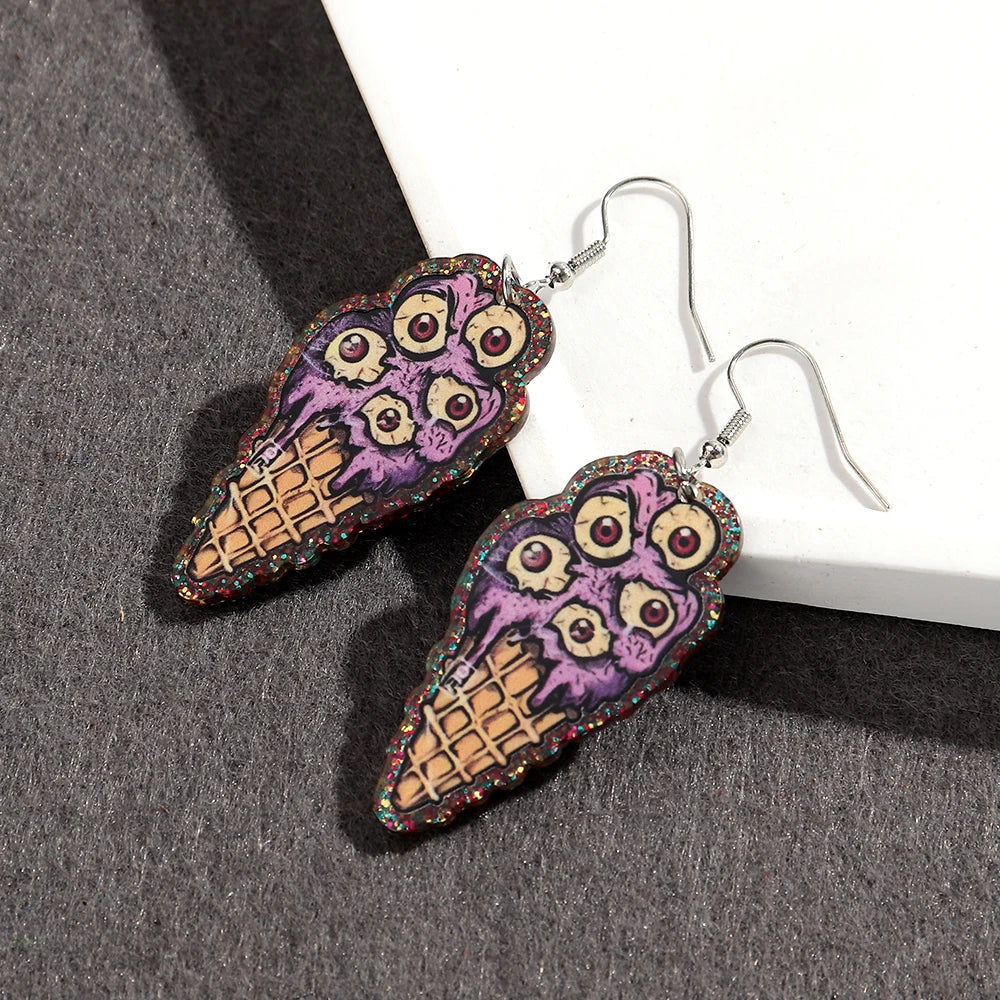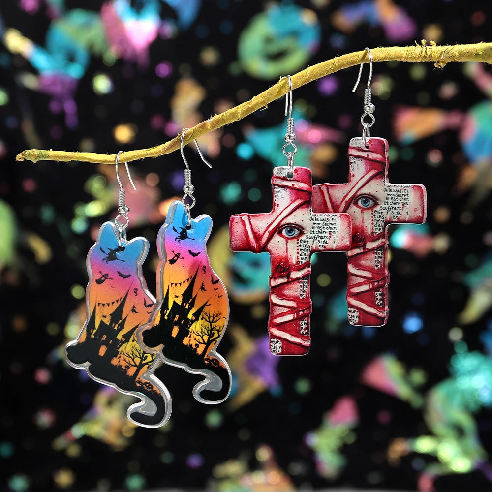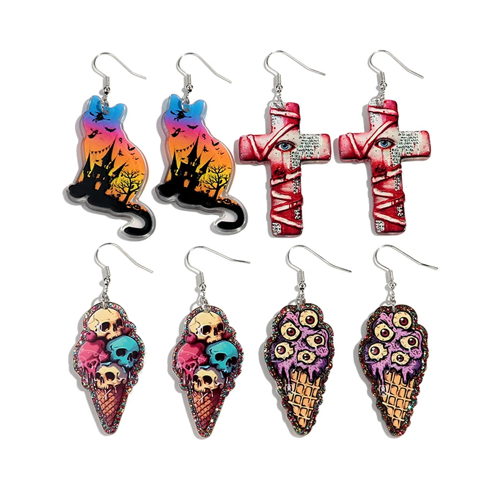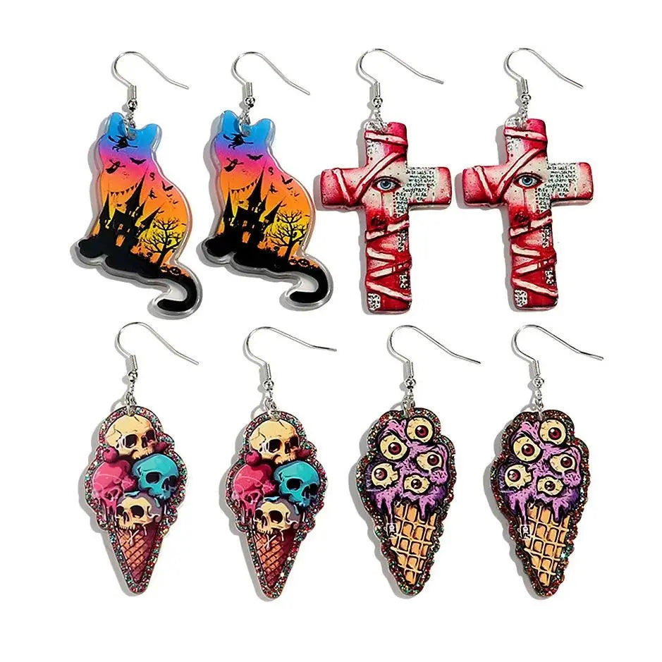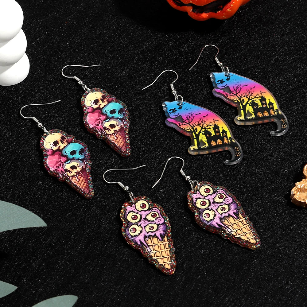 Newest Halloween Acrylic Earrings for Women Gothic Eyeballs Skull Ice Cream Cat Blood Cross Drop Earring Hallowmas Jewelry Gifts