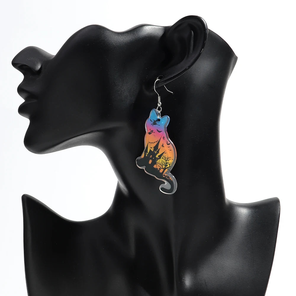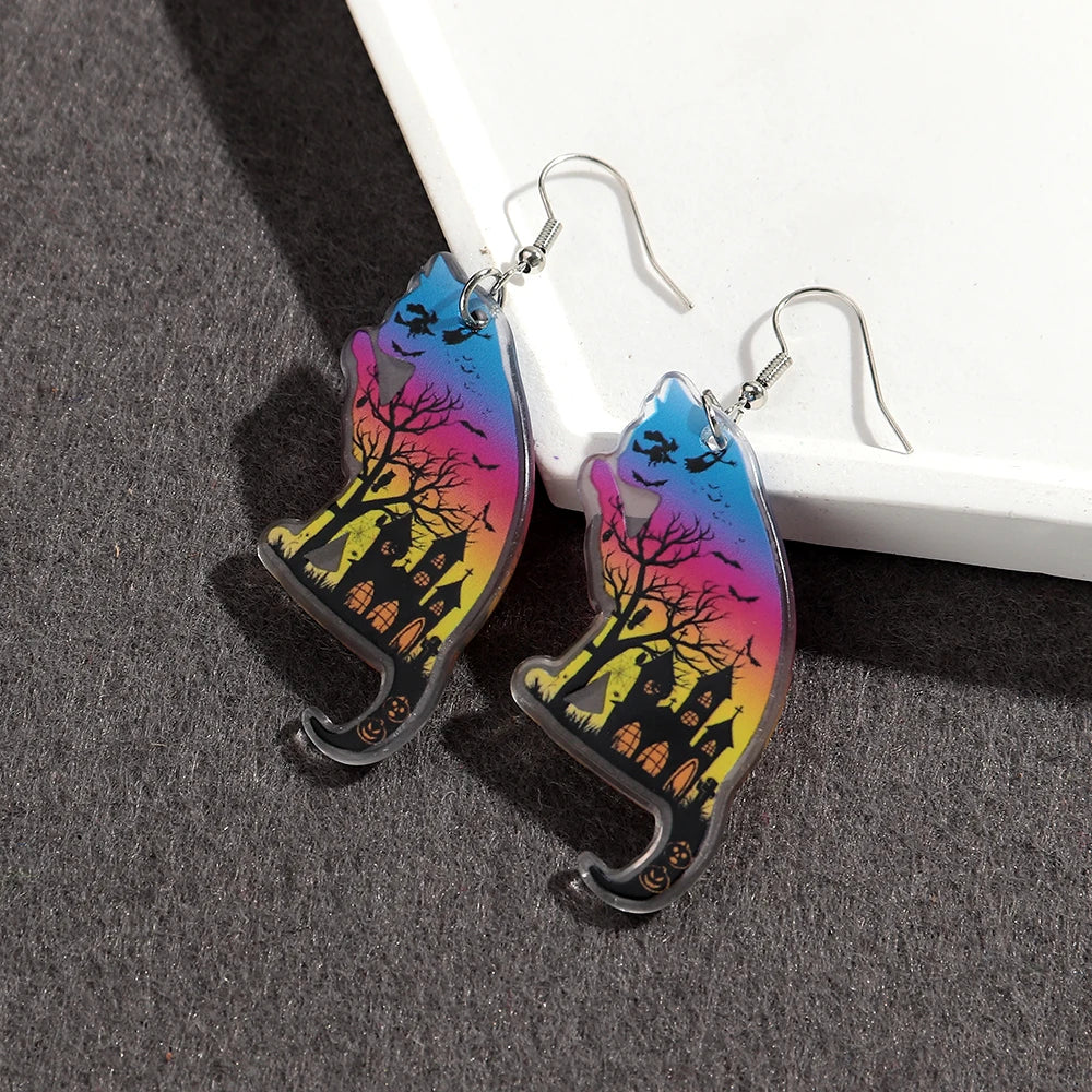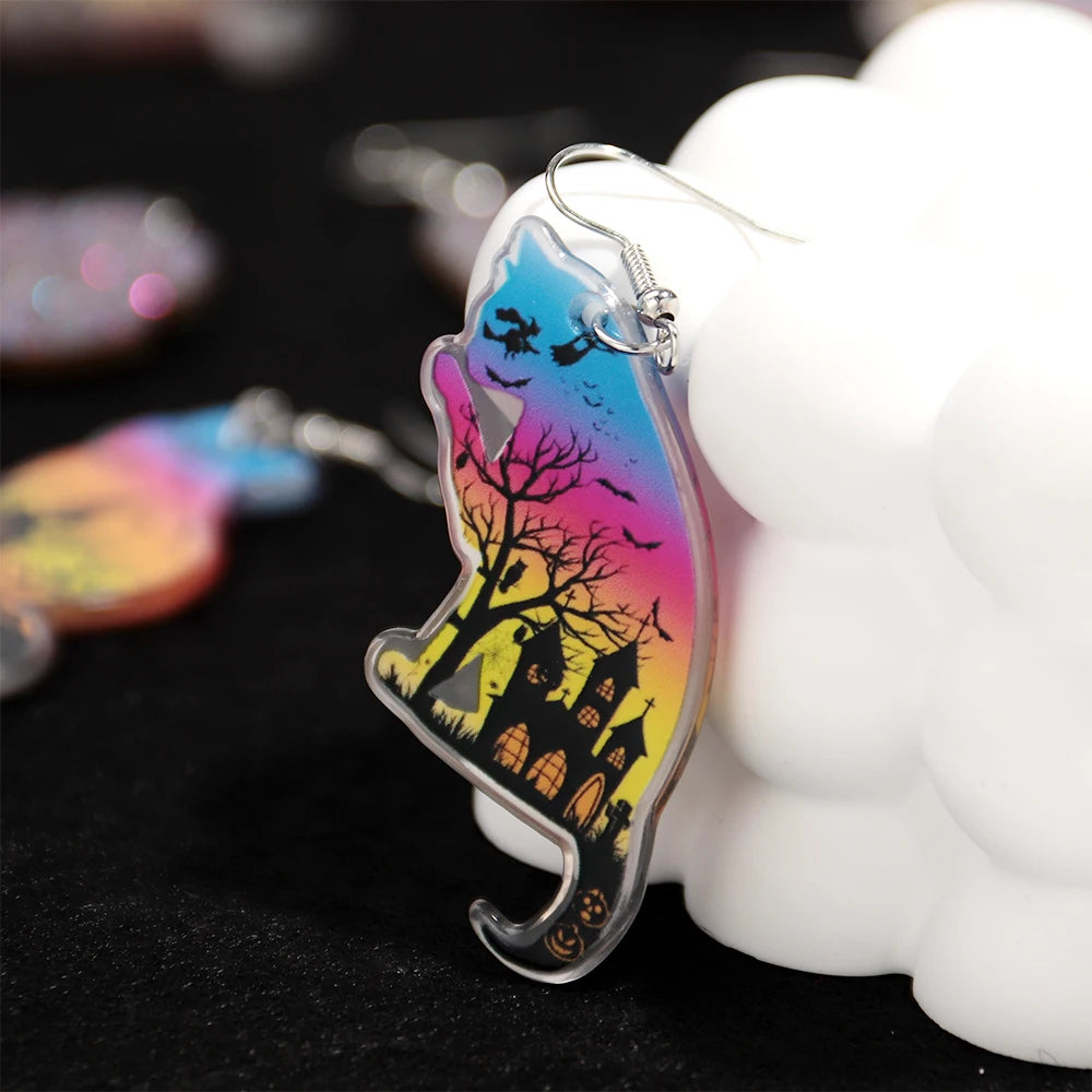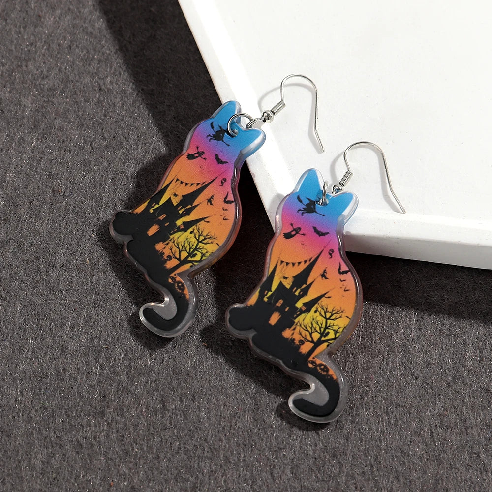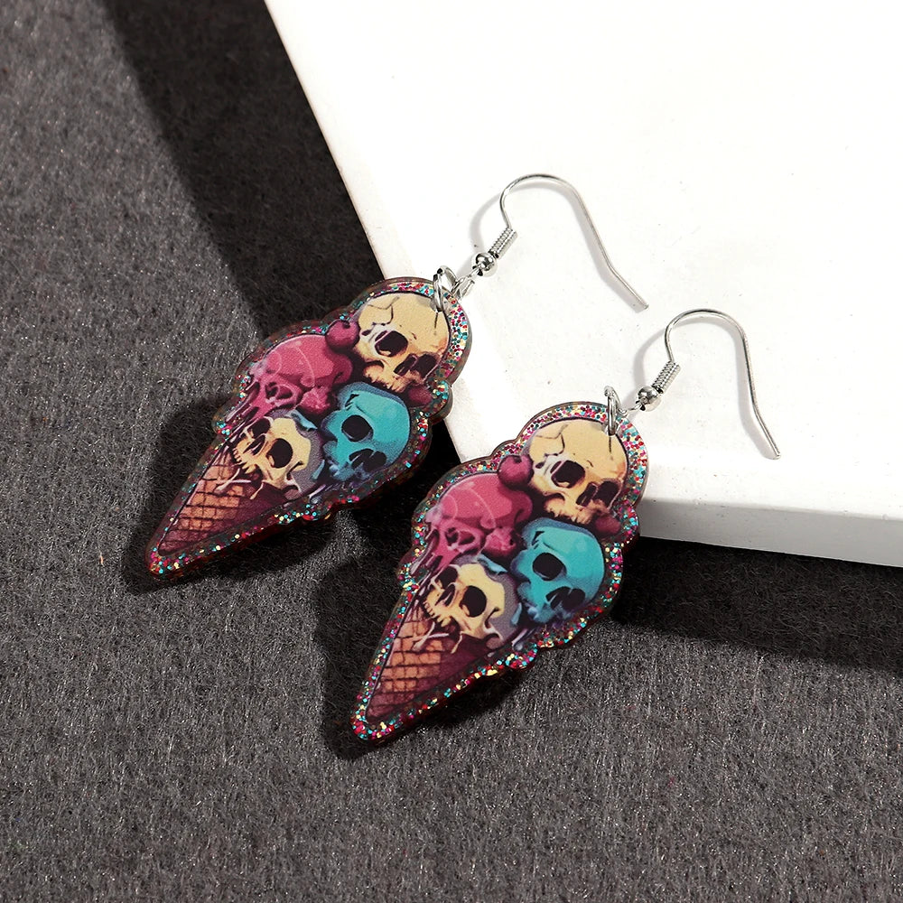 Newest Halloween Acrylic Earrings for Women Gothic Eyeballs Skull Ice Cream Cat Blood Cross Drop Earring Hallowmas Jewelry Gifts