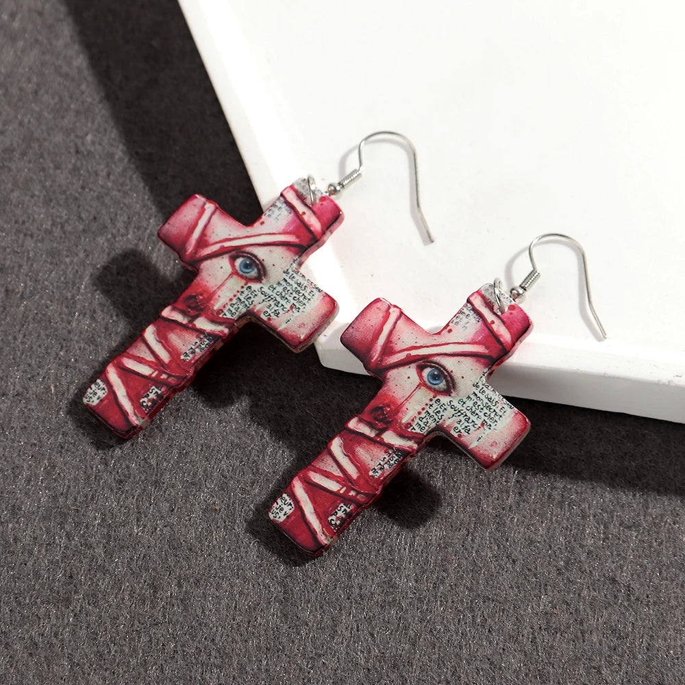 1 pair of acrylic blood stained cross earrings: Acrylic Earring For Women Halloween