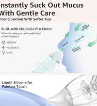 ⓵ The powerful variable frequency motor can provide negative pressure up to 65KPA, which can easily absorb boogers of different hardness and help you solve your baby's hygiene problems.